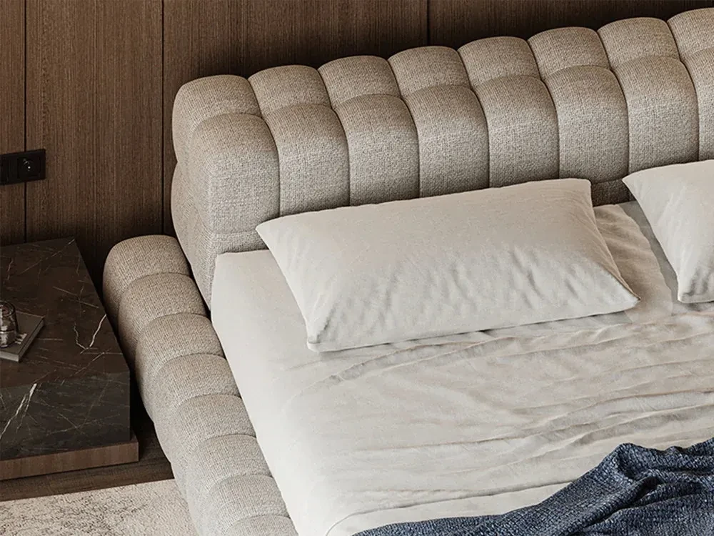 Кровать на фото представлена в ткани категории 1. Матрас, спальные принадлежности и аксессуары в комплект не входят.