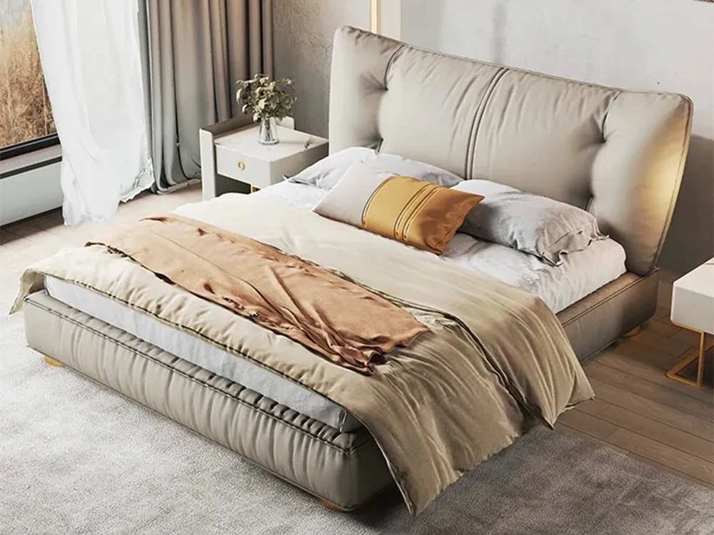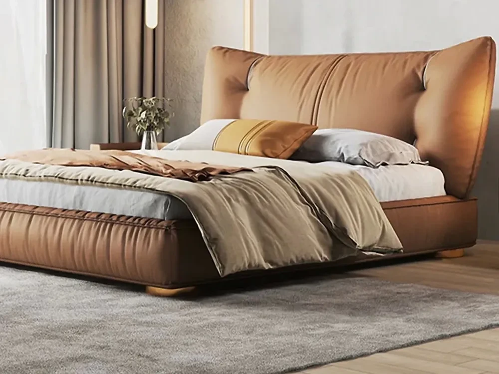 Каркас кровати изготовлен из экологичных материалов: ЛДСП, бруса и фанеры.