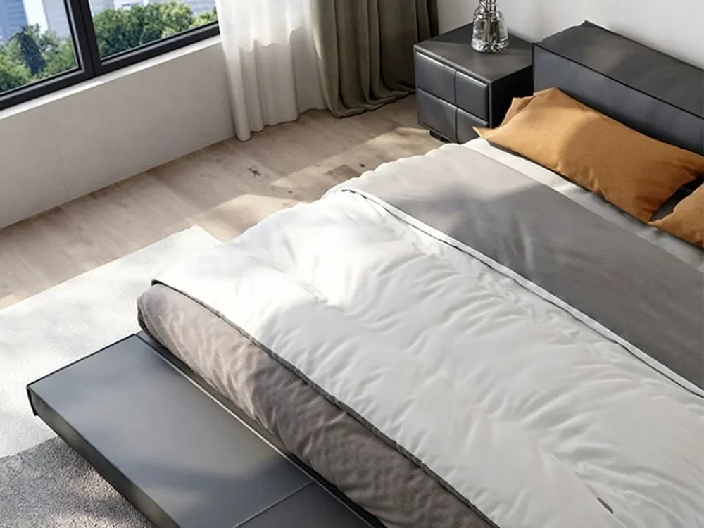 Каркас кровати изготовлен из экологичных материалов: ЛДСП, бруса и фанеры.