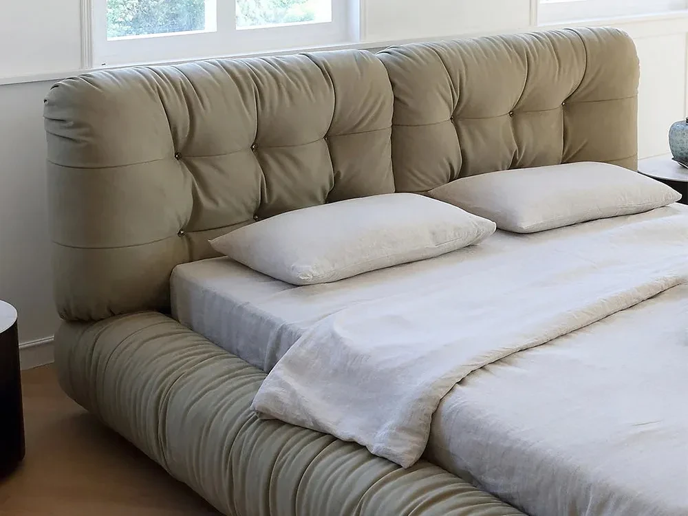 Кровать на фото представлена в ткани категории 1. Матрас, спальные принадлежности и аксессуары в комплект не входят.