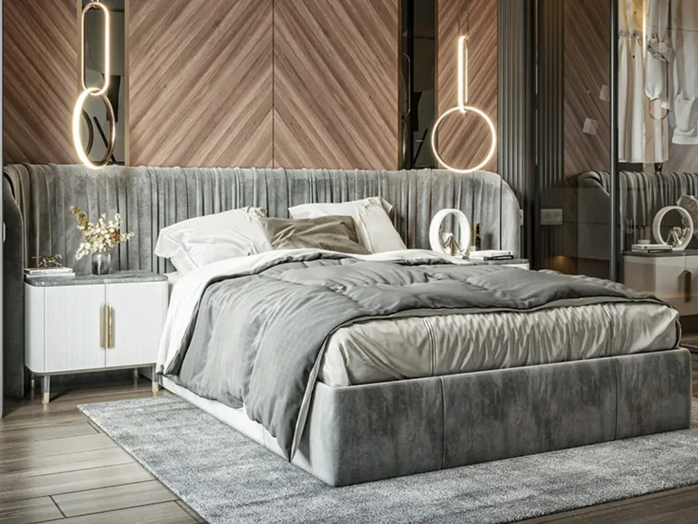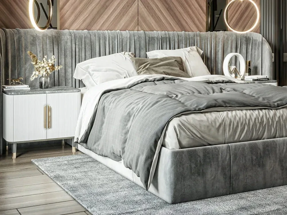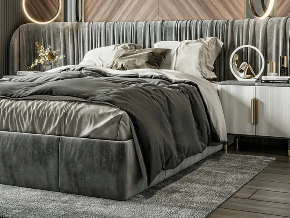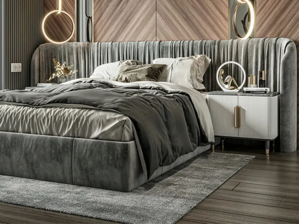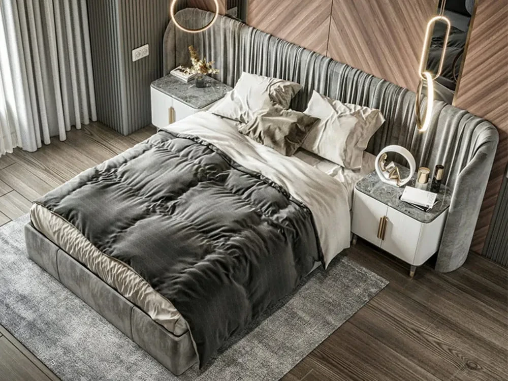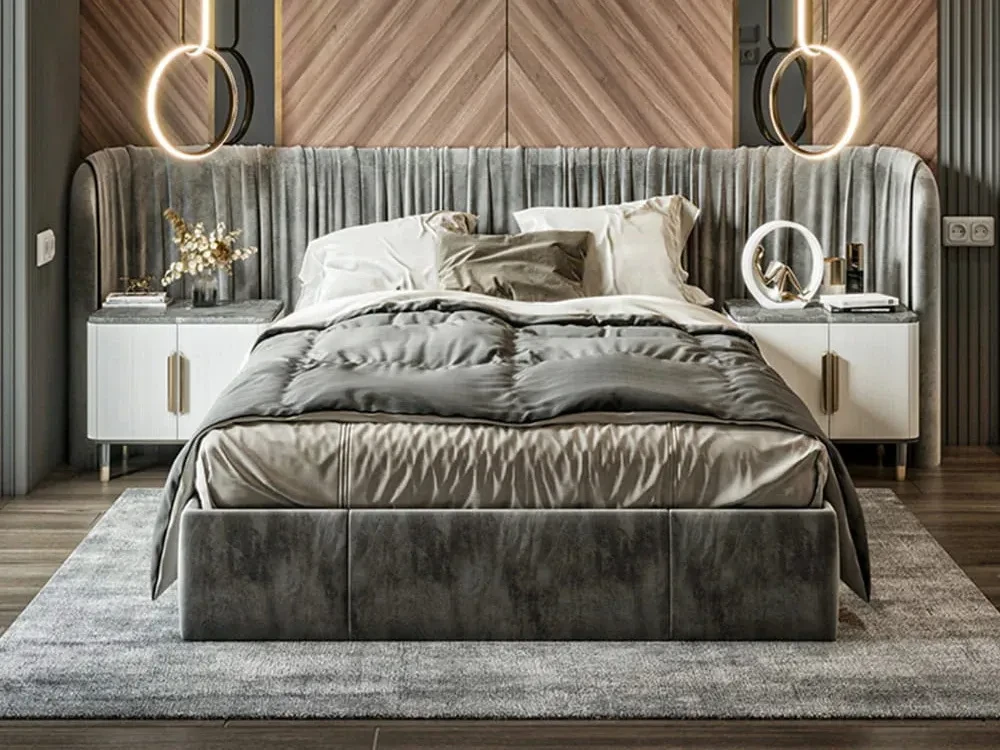 Кровать на фото представлена в ткани категории 1. Матрас, спальные принадлежности и аксессуары в комплект не входят.